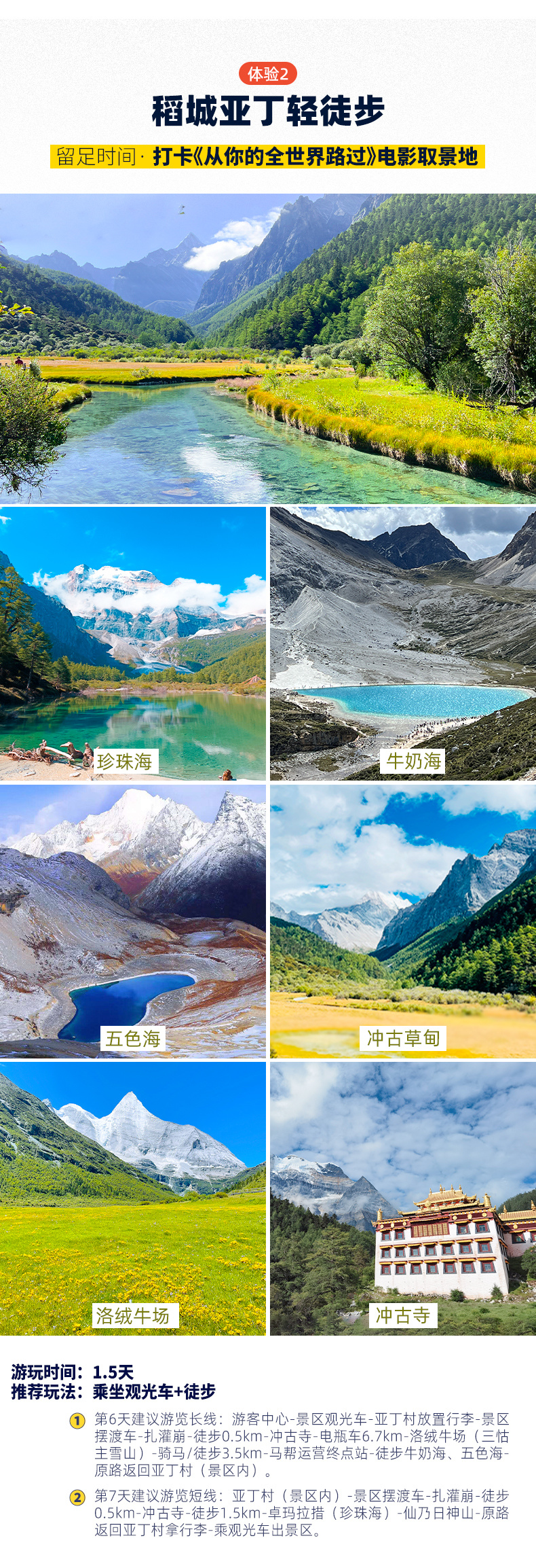 D7 | 第7天,亚丁村-稻城亚丁(珍珠海、冲古草甸、冲古寺)-雅江 | |