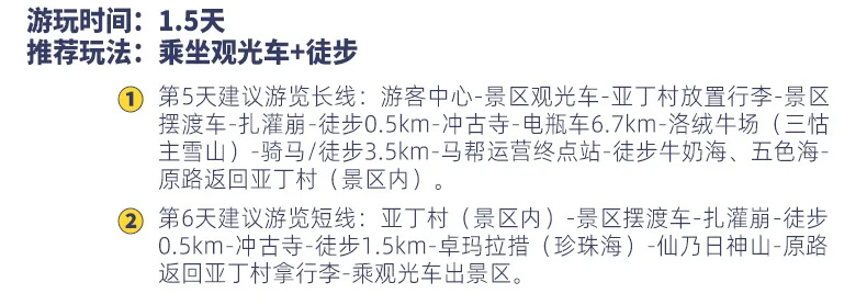D5 | 第5天,香格里拉镇-稻城亚丁(牛奶海、五色海、洛绒牛场)-亚丁村观高原星空 | |