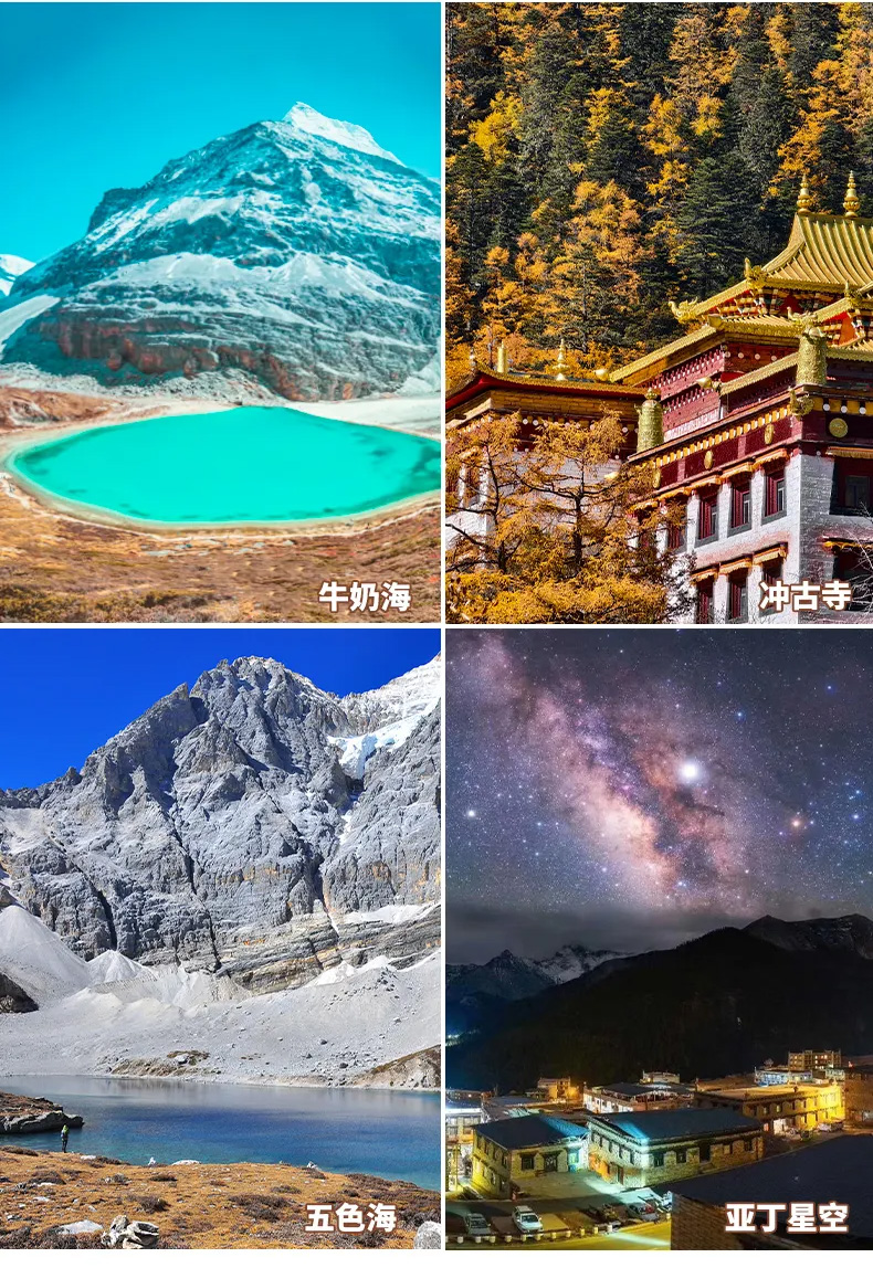 稻城亚丁+四姑娘山双桥沟+墨石公园+理塘+甲居藏寨+折多山7日深度游
