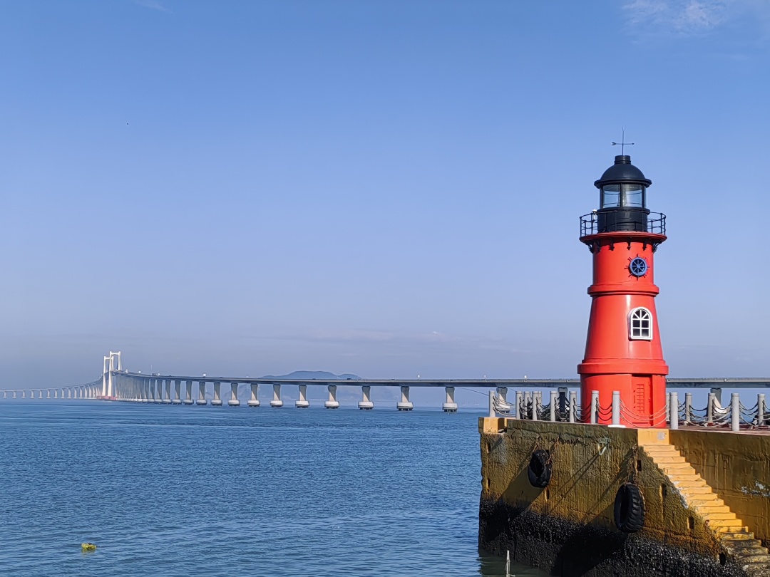 长山尾灯塔位于启航广场,灯塔塔身全红色,十分亮眼,风格清新,吸引了众多文艺青年到此打卡。这里还能远眺南澳大桥全景!