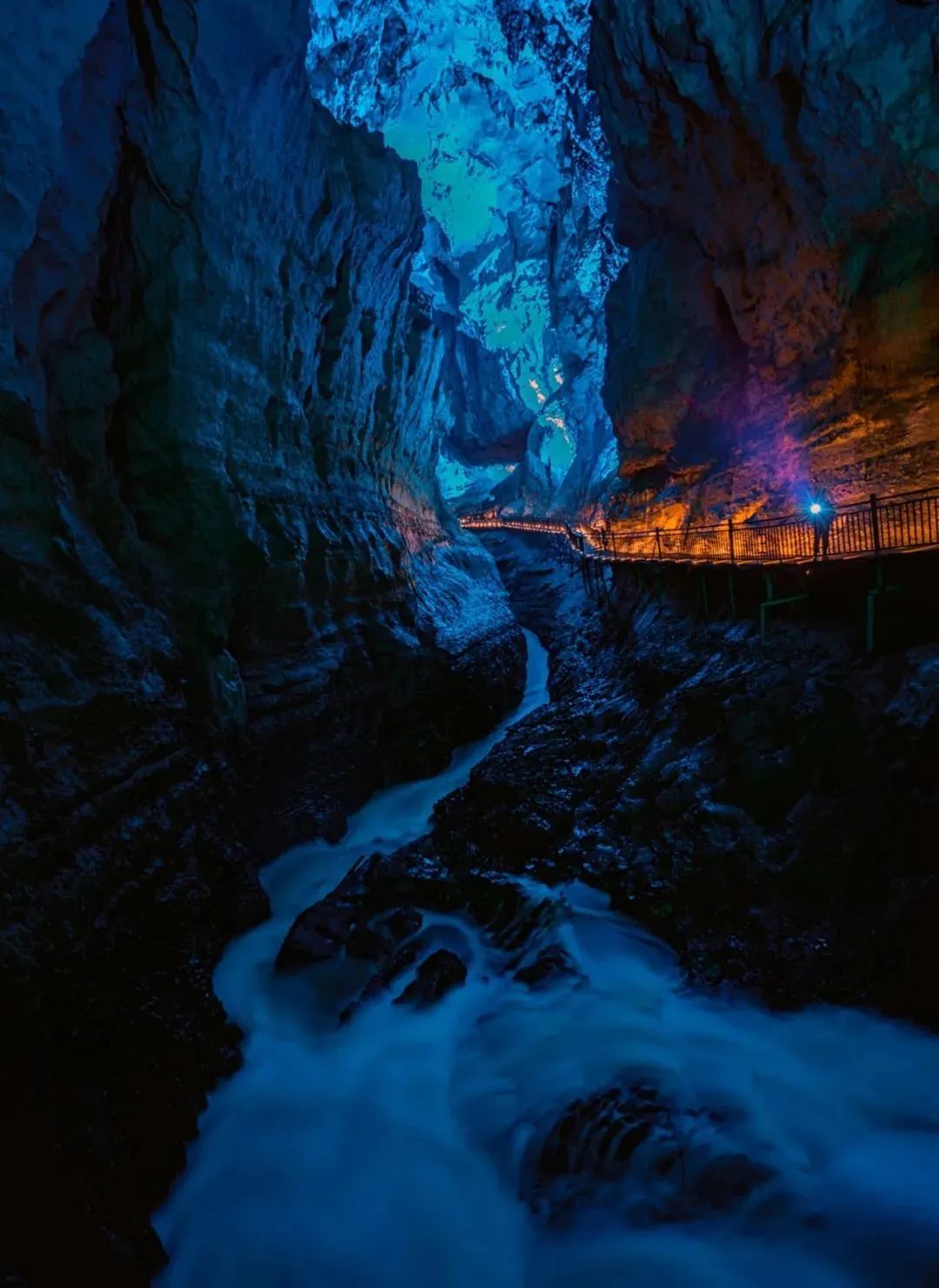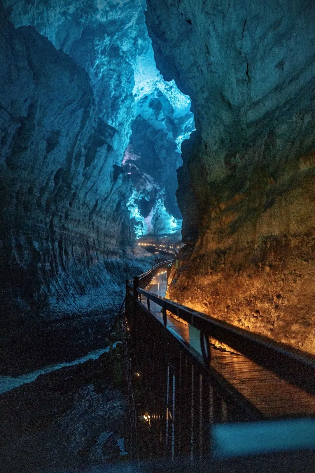 洞天盛境是国内罕见的总长约3公里的地下大峡谷,步入光怪陆离的洞天秘境,仿佛穿梭于时间与空间的裂缝之中。这里是明星同款打卡地,沿着曲折蜿蜒的栈道缓缓深入,演员王丽坤曾驻足的地方逐渐映入眼帘。