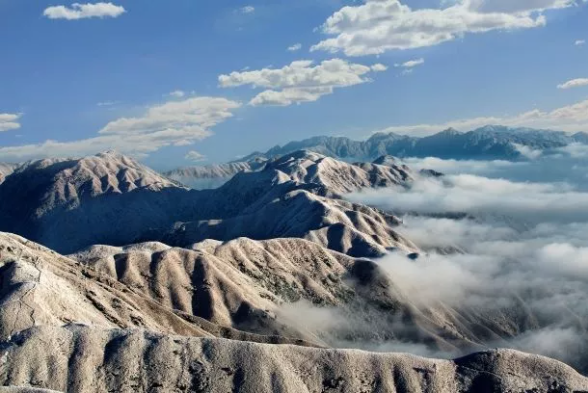满眼雪白的高山,云雾飘渺的山巅