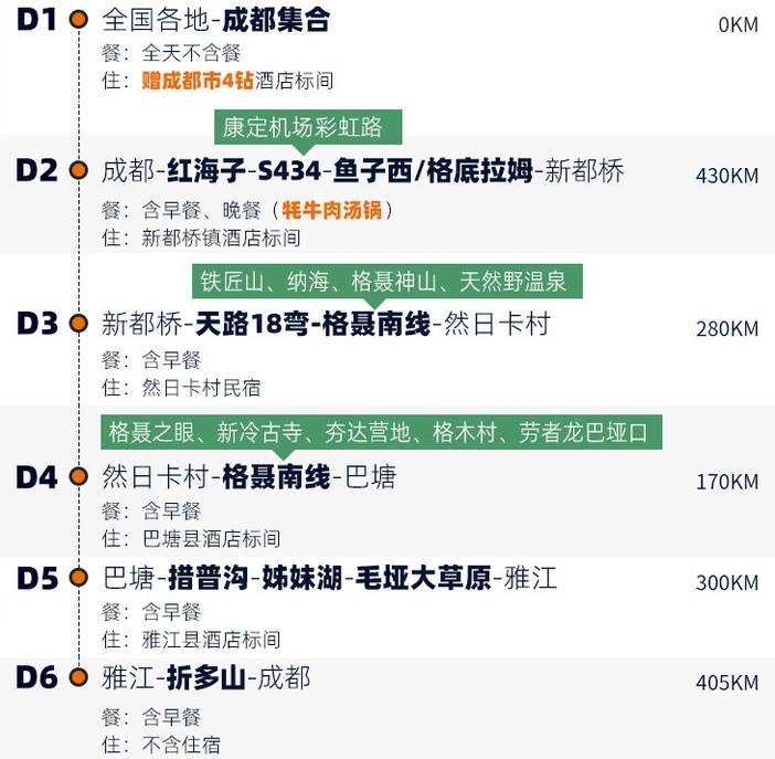 咨询成团、余位 第17期:2025.09.30成都集合-------2025.10.05成都完团 (3980元/人) 第18期:2025.10.01成都集合-------2025.10.06成都完团 (3980元/人) 第19期:2025.10.02成都集合-------2025.10.07成都完团 (3980元/人) —第17期至第19期国庆节特辑,3980元/人,单房差1300元/人— 第20期:2025.10.10成都集合-------2025.10.15成都完团 (3580元/人) 第21期:2025.10.17成都集合-------2025.10.22成都完团 (3580元/人) 第22期:2025.10.21成都集合-------2025.10.26成都完团 (3580元/人) 第23期:2025.10.24成都集合-------2025.10.29成都完团 (3580元/人) —第20期至第23期金秋彩林季,3580元/人,单房差900元/人— 线路纯玩,不安排购物点 |