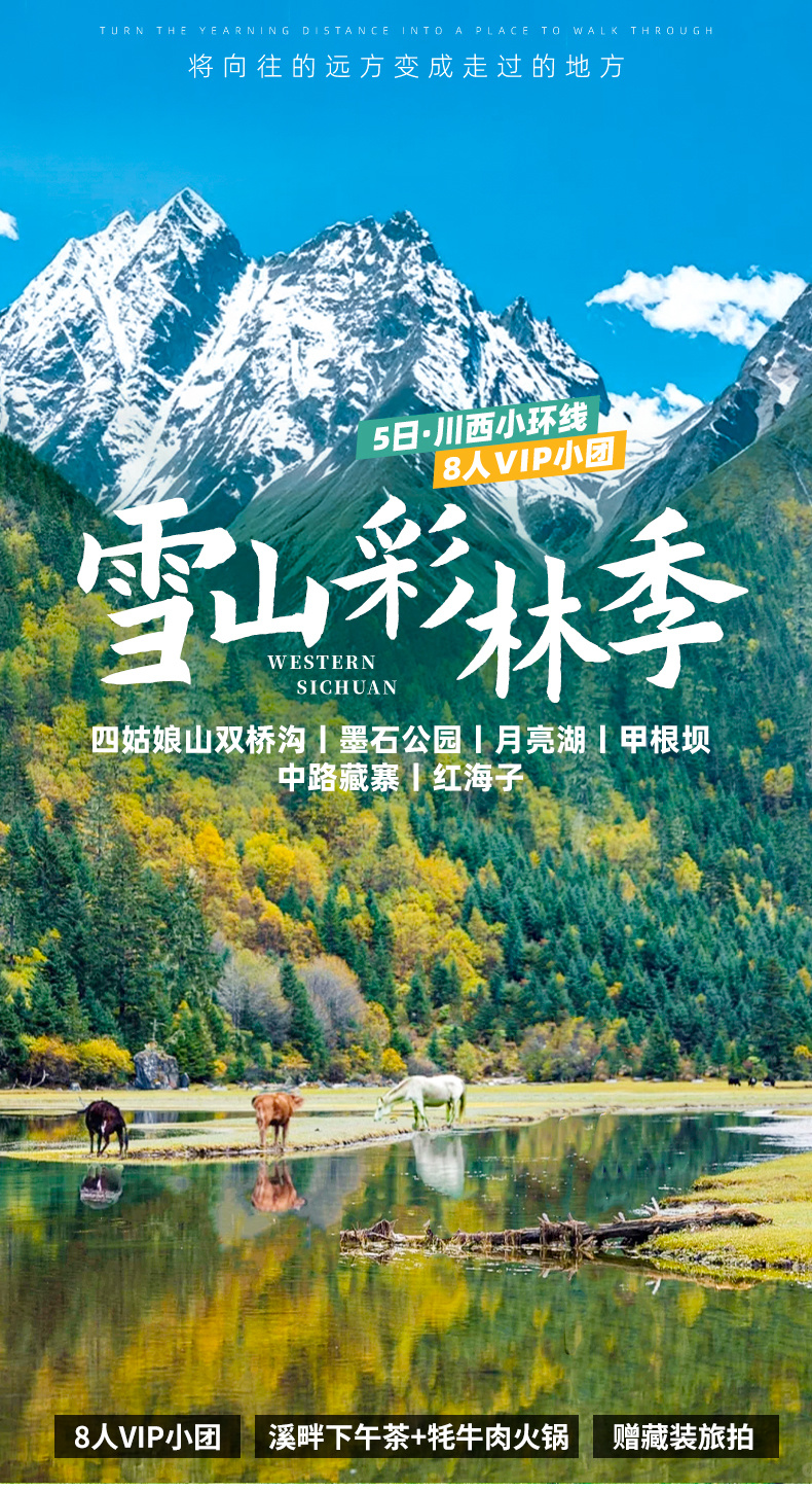 四姑娘山双桥沟+墨石公园+月亮湖+甲根坝+中路藏寨+鱼子西+红海子5日游