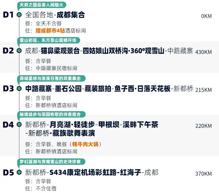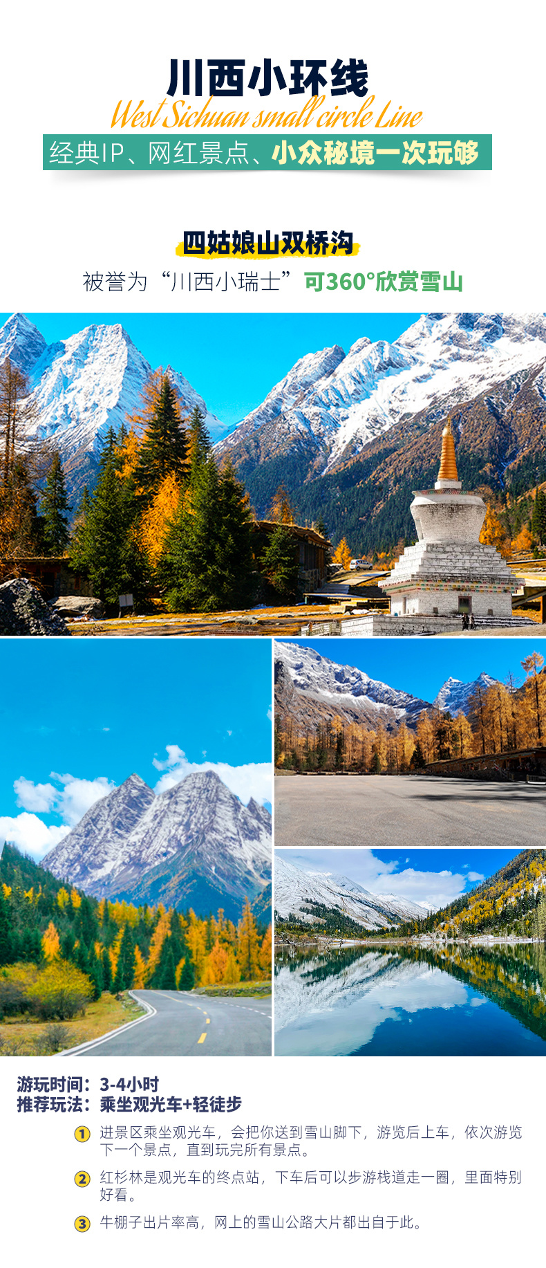 D2 | 第2天,成都-猫鼻梁观景台-四姑娘山双桥沟·360°观雪山-中路藏寨 | |