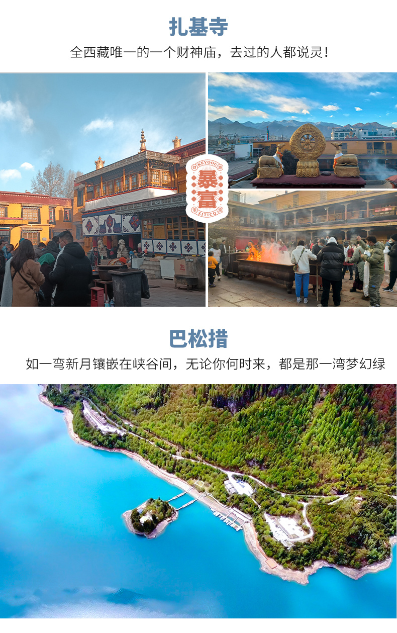 特色 | ● | 扎基寺拜财神、参观布达拉宫、大昭寺 |