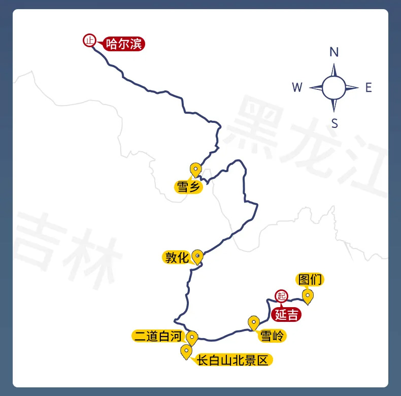 今日就将从吉林省离开,来到黑龙江省区域,我们即将驱车一路向北,前往雪的故乡。 | ||