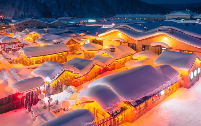 可以走走雪韵大街,欣赏雪房子,寻找雪蘑菇,还可穿上乡村特色的花棉袄COSPLAY。东北冬季日落时间非常早,大约四点多的时候天就已经黑了,可以漫步棒槌山栈道,俯瞰【雪乡夜景】红红的灯笼映在洁白的雪地上。也可参加雪乡景区举办的雪地蹦迪晚会,(如遇景区原因或大风等天气原因不举办不退费用) |