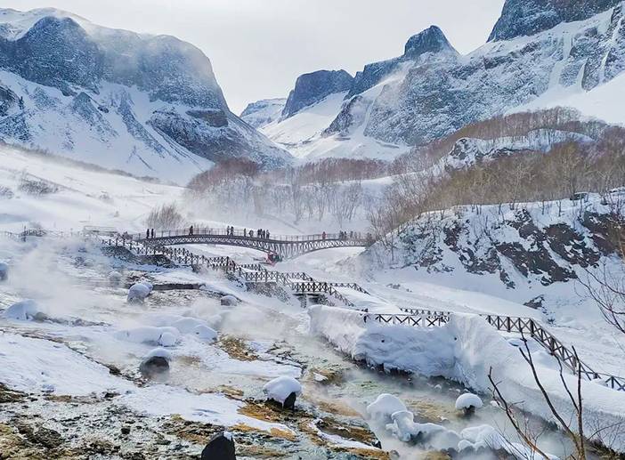 冬季白雪环绕之下,冬季白雪皑皑,这长白山的支流却始终不冻,流水潺潺,在长白山的温泉河中漂流,看流水、雾凇(视天气情况),仿佛仙境一般。我们乘坐小船漂浮于水面,两岸得风景尽收眼底,真是一次奇妙的体验! | ||