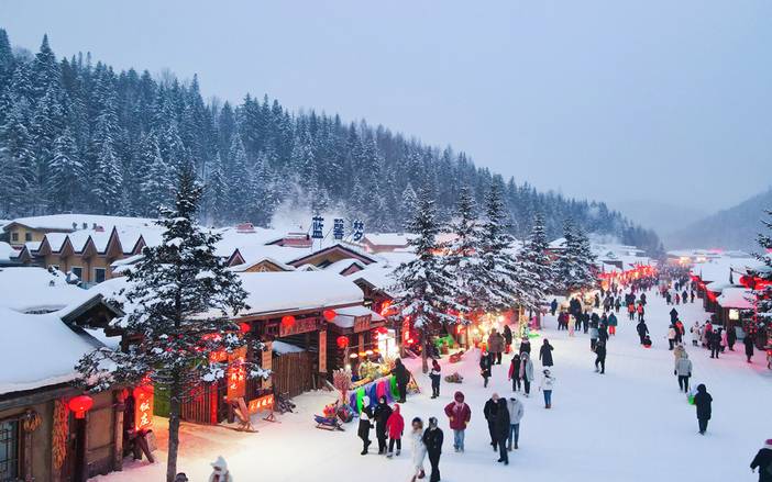 可以走走雪韵大街,欣赏雪房子,寻找雪蘑菇,还可穿上乡村特色的花棉袄COSPLAY。东北冬季日落时间非常早,大约四点多的时候天就已经黑了,可以漫步棒槌山栈道,俯瞰【雪乡夜景】红红的灯笼映在洁白的雪地上。 也可参加雪乡景区举办的雪地蹦迪晚会(如遇景区原因或大风等天气原因不举办不退费用)。 |