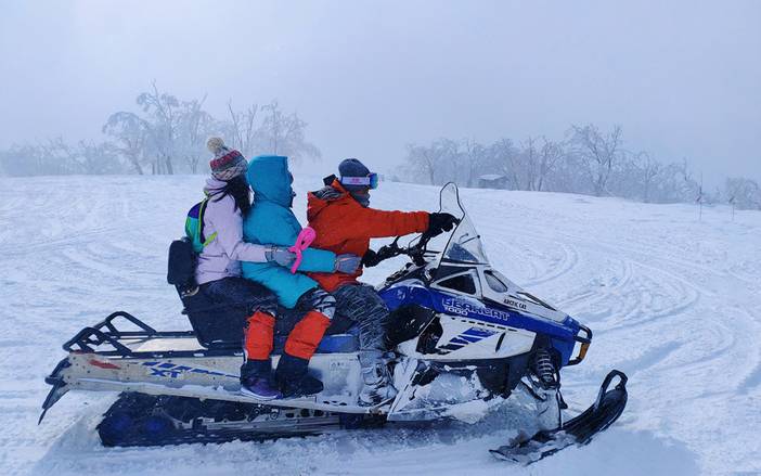我们来到山脚,乘坐【网红雪地摩托】上山;我们在山顶一路上边走边玩,移步换景,大家互相打闹着,玩雪,千万要注意安全哦~ | ||