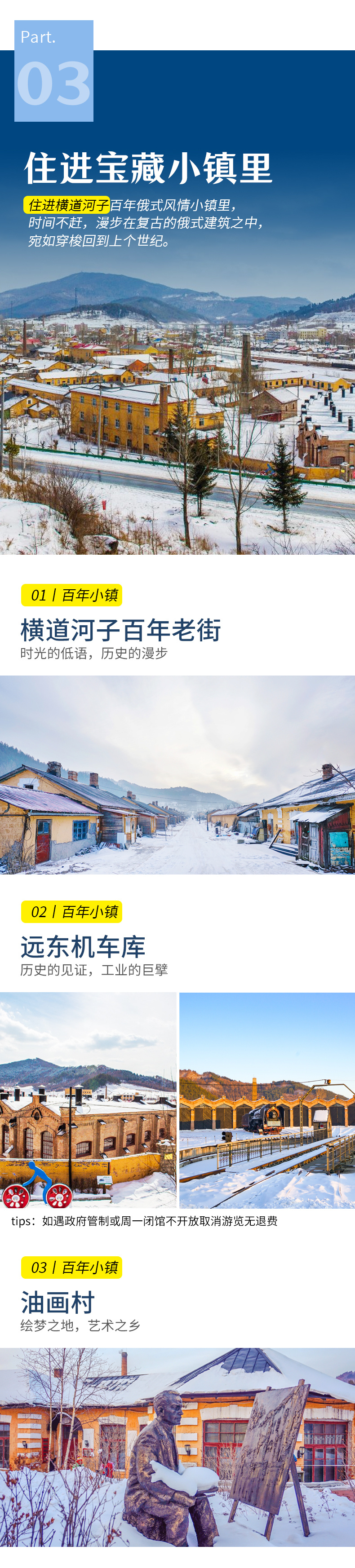 D3 | 第3天,横道河子/百年老街/远东机车库/油画村-雪乡夜景-雪地篝火 | |