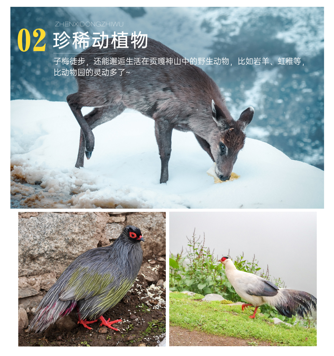 早上早餐后出发贡嘎大本营,最大近距离的欣赏到贡嘎雪山,感受蜀山之王的雄伟,中午开始下撤,一路下坡回到下子梅村。晚上贡嘎雪山自然保护区护林员进行兽类图鉴,给大家观赏众多的图片和视频,了解贡嘎西坡丰富的野生动物们(如:岩羊、雪豹、毛冠鹿、高山狼等),宣传保护野生,守护绿色山林。 |