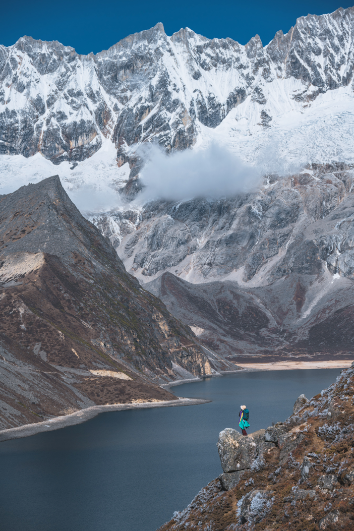 早8点酒店早餐后出发,乘车经措玉村(海拔4160m)1.5小时即可到达白玛林措(海拔4500m),背上今天的路餐和备用衣物,在领队的陪同下,开始我们的库拉岗日雪山徒步之旅。今天的徒步比较简单,沿着白马林措右侧一直前行到湖的尽头白马林寺,探访莲花生大师的修行地,眺望卡热疆雪山,之后原路返回。白马林措湖颜色因深浅不同与其周边的景色融汇后呈现出蓝、绿、白三种颜色 。据说信徒们可以从这湖底窥见自己的今生来世。天气好的情况下,我们将提供天幕帐篷、户外桌椅及茶具,可以坐在湖边一边喝茶一边欣赏雪山,傍晚返回措玉村或色乡入住。 |