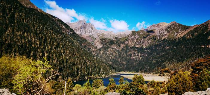 早上吃了领队做的营地早餐,热身后开始徒步,多余东西放在营地,只背保暖衣物、路餐及水等少量物资轻装上阵。 ![]() ![]() 今日海拔爬升400m,开始一段在林间行走,坡度较陡,后一段视野开阔,为草甸和灌木丛,天气晴好可同时看见亚丁三神山。 ![]()