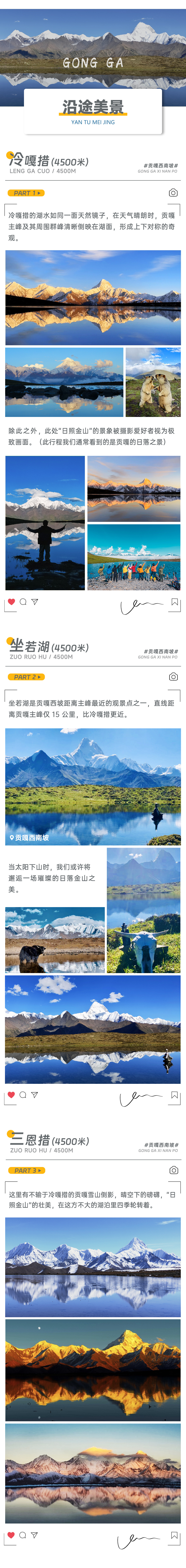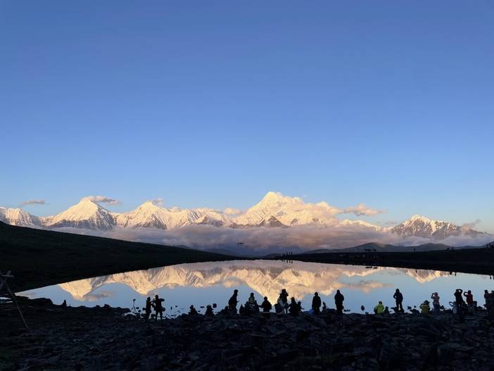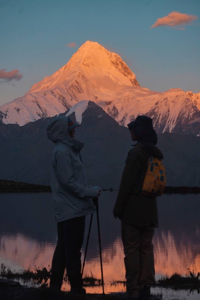 经过昨天的徒步,今天大家可在民宿不用早起,多休息一下。上午前往三恩措,三恩措位于冷嘎措旁边,相对于冷嘎措,这里几乎没有游客,而且更容易拍摄贡嘎群山连绵的大片,视野也会更广阔。一路走在贡嘎西二山脊上,高耸的雪山相伴。 ps:午餐路餐干粮 在三恩措游玩尽兴后,前往冷嘎措等待日落,晚上回到客栈休息。 |