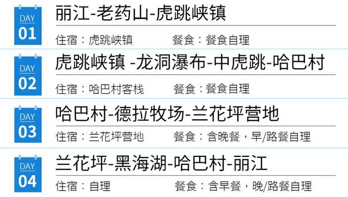 咨询成团、余位 每周三/周五 丽江出发 费用:2680元/人 2人起发 线路纯玩,不安排购物点 |