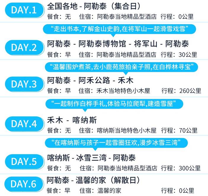 D1 | 第1天,全国各地-新疆阿勒泰集合 | |