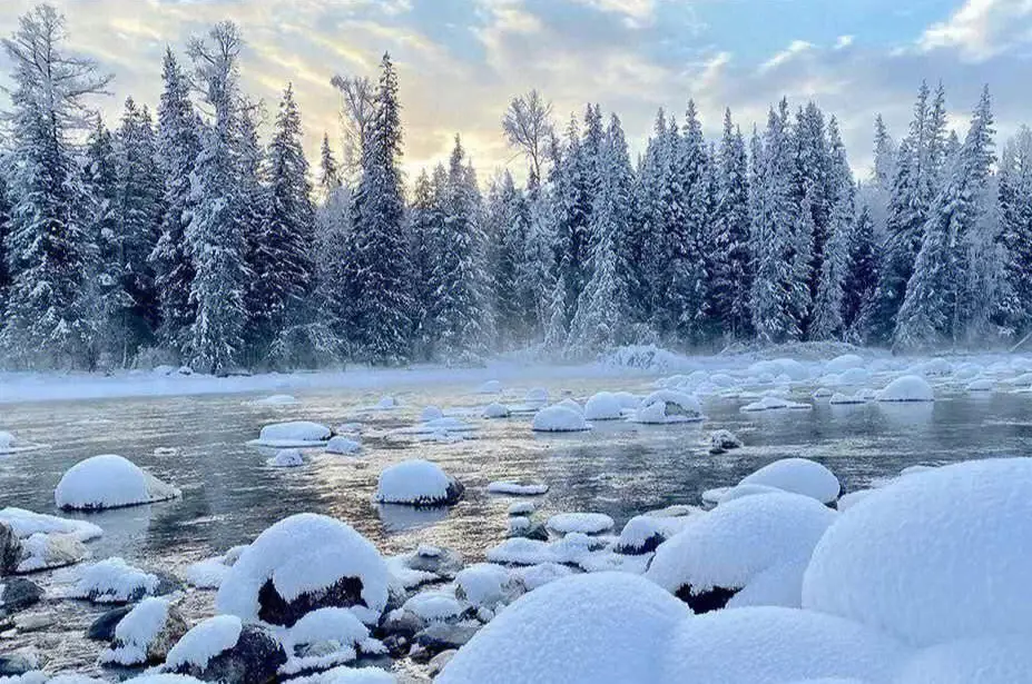 今日在喀纳斯我们可以睡到自然醒,零零星星的小木屋,银装素裹的白桦林,潺潺流过的融水,挂在树木枝桠间的雾凇,冬天的喀纳斯就是童话世界。用过早餐后,大家可以相约一起打雪仗,快乐不打烊! 玩够了开始下山,在喀纳斯蜿蜒的山路上行驶,两侧便是已被白雪覆盖的喀纳斯河。喀纳斯河在山谷中蜿蜒,造就了卧龙湾、月亮湾、卧龙湾等秀丽绝伦的水湾河滩景点,河的上源就是有水怪出没的喀纳斯湖。景色秀丽的喀纳斯三道湾,随着气温降低也结上了厚厚的冰层,风景也从五彩斑斓的西方油画转换为传统水墨山水画。我们第一站首先停靠卧龙湾,当地人称锅底湖,是取其形状象锅底而得名,卧龙湾河湾内发育两个小心滩,像两个巨大的脚印。传说是神仙难以抗拒美景的诱惑,下凡赏景时所留。 第二站抵达月亮湾,月亮湾有几处反“S”状弯河曲组成的半月牙河湾,这里美丽静谧恰似似弯,被称为“月亮湾”。月亮湾是卧龙湾河曲的延伸部分,冬季的月亮湾,安静的被白雪覆盖,恰如天上被云层遮挡的明月,吐纳着氤氲的气息。 第三站停靠神仙湾,神仙湾是喀纳斯湖在山涧低缓处形成的一处浅滩。在阳光照射下闪着细碎的光,仿佛无数珍珠洒落,也称为“珍珠滩”。冬季的神仙湾常有云雾缭绕之景,群山环绕,白雪覆盖着湖面,如临仙境。 下午适时返回阿勒泰,傍晚可以沿着克兰河散步,也可以去五百里风情区,克兰公园,邂逅超大摩天轮! |