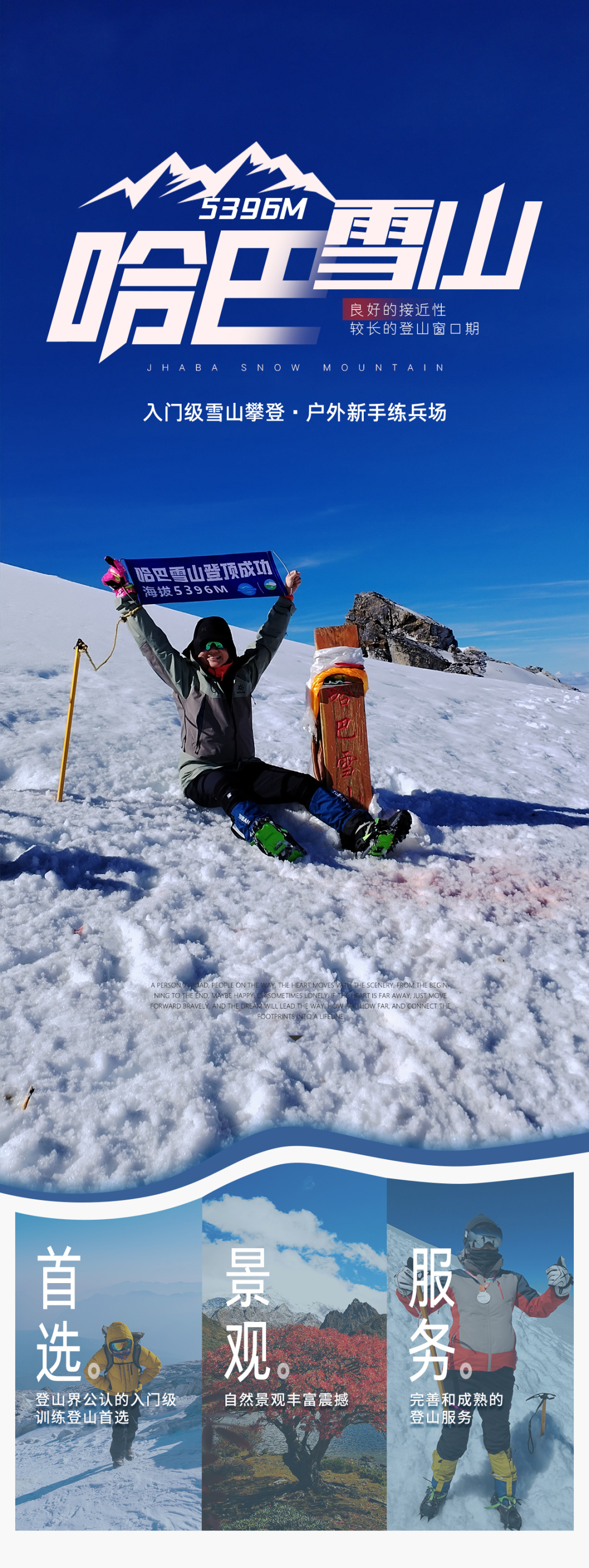 6、成功经验:常年组织哈巴雪山登山活动,几乎每天都有队员参加我们的活动,更有单次独立组织服务120人攀登哈巴雪山、1900余人的梅里雪山转山活动经验;