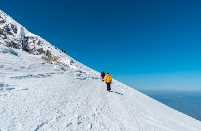 凌晨3:00起床,整理行装、检查个人装备, 3:30吃早餐,4:00跟随协作有序向顶峰进发。登顶成功(正常时间为9-10点之间)后请尽快在峰顶拍照,不要在峰顶停留过长时间,然后在高山协作的带领下下撤返回大本营。 抵达大本营后,稍作休息,收拾物资装上骡马,下撤到哈巴村。之后我们驱车返回丽江晚上八点半左右,结束哈巴雪山活动。我们总会相遇,我们总要离别,青山不改,绿水长流,他日江湖再见。 注意: 登山过程中,如遇到身体不支的队员,请及时告知向导或高山协作队员,由高山协作队员带其撤回大本营;今天体力消耗较大,可提前预定下山骡马(安全及费用自理)。 |