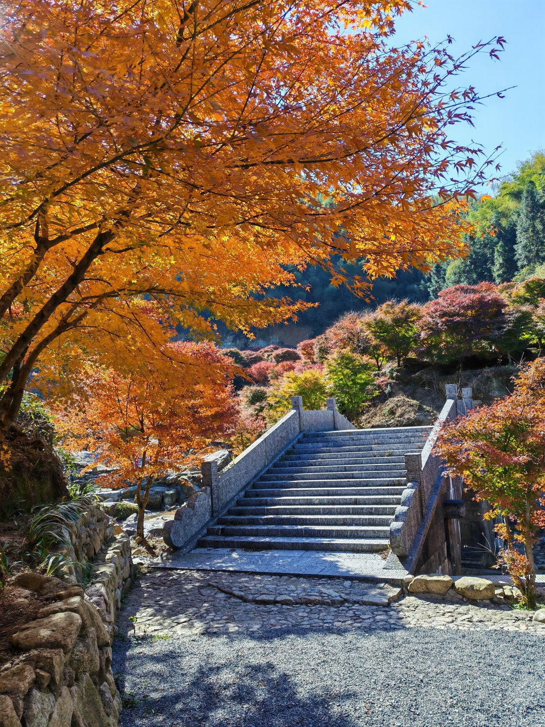 漫山的枫叶里,深红、粉红、橙红、橘红,层次分明