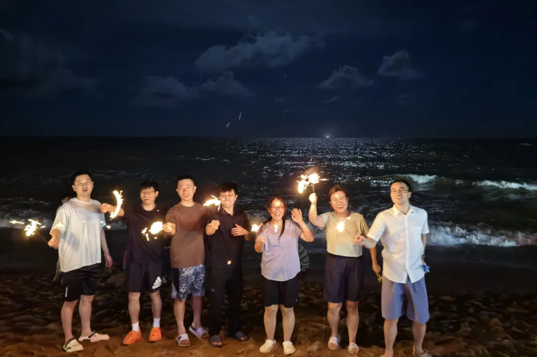 当夜幕降临,海浪轻吟,我们将一起点燃手中的小烟花。火光划破黑暗,笑声随着海浪传远,这是独属于我们团队的浪漫时刻。骑行看海,更要一起创造发光发热的回忆!