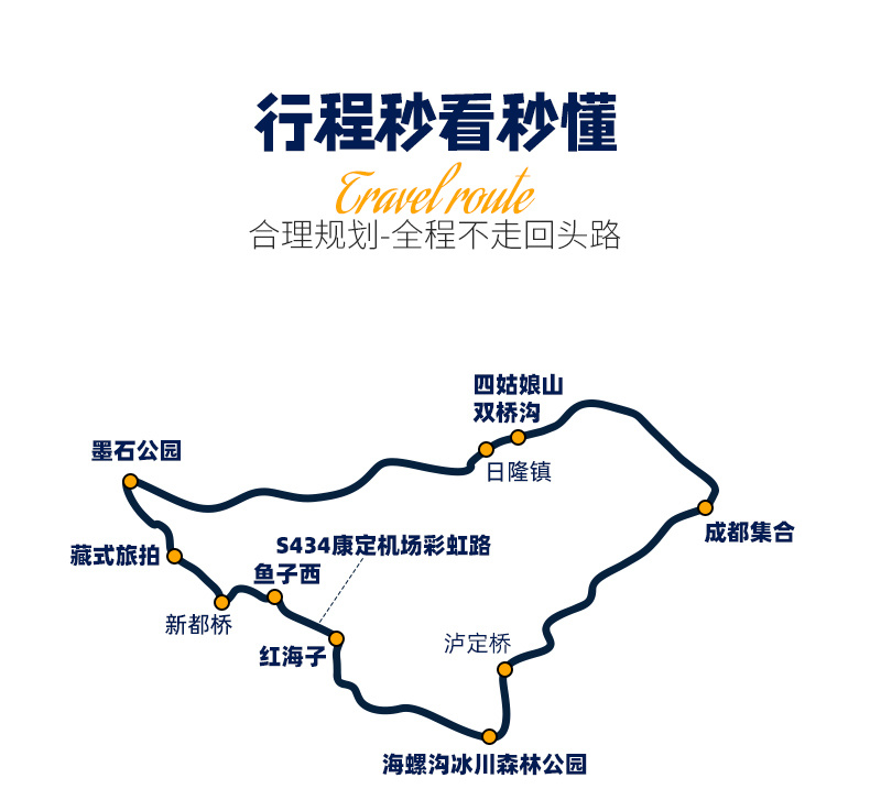 | 特色 | ● | 海螺沟冰川、大冰瀑布、泡天然温泉 |