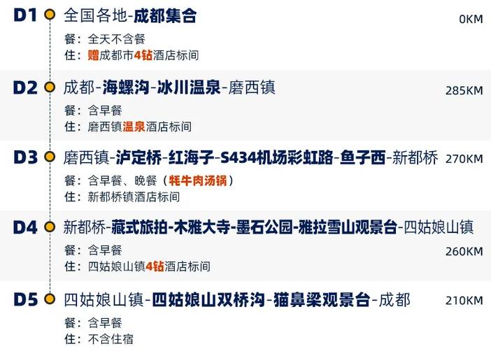 全国各地的小伙伴抵达成都,入住我社为你安排的酒店。 今天是集合日,你可以放下行李后在酒店好好休息一下,也可以去品尝一下各种美食。 上午抵达成都的小伙伴,可以逛一逛成都的时尚中心【春熙路】和千年古刹【大慈寺】,打卡中西合璧的【太古里】和【IFS翻墙熊猫】。 下午抵达成都的小伙伴,可以去【锦里】和【宽窄巷子】, 感受最悠闲惬意的蓉城慢生活,或者是去打卡赵雷《成都》里的【小酒馆】。 特别提醒: (1)集合日为自由活动,不是正式的行程,请在自由活动时注意人身财产安全,集合日不含保险; (2)到集合酒店报“姓名”拿房,房费已付,押金自付。入住酒店的时间一般在集合日当天的14点以后,如果您提前到达且酒店房间未整理出来无法办理入住,可将行李暂时寄存在前台,先在市区周边自由游玩; (3)未支付尾款和未签定合同的队员,可以选择到公司支付尾款,签定合同;也可以选择上车后支付尾款,签定合同。上车后支付尾款的队员,不能在车上刷卡,但可以上车后转账; (4)导游或者驾驶员,会在集合日21:00之前,通知队员次日的出发时间,如果21:00尚未接到导游或者驾驶员的通知,请联系客服确认; (5)建议队员们在集合日抵达成都后,可在市区采购一些旅行用品,如零食、佐餐小菜、药品等。 |