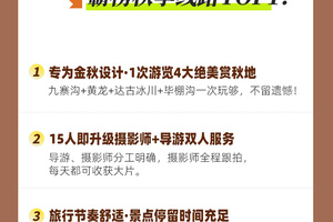 国庆+秋季+初冬限定,仅13期,在对的时间去对的地方。 1人成团,1-5人司机兼向导,6人及以上配纯玩导游,15人即升级摄影师+导游双人服务,28人封队; 第04期:2025.10.16成都集合-------2025.10.21成都完团 第05期:2025.10.19成都集合-------2025.10.24成都完团 第06期:2025.10.21成都集合-------2025.10.26成都完团 第07期:2025.10.24成都集合-------2025.10.29成都完团 第08期:2025.10.26成都集合-------2025.10.31成都完团 第09期:2025.10.29成都集合-------2025.11.03成都完团 ) —第03期至第09期金秋特辑,3680元/人,单房差1000元/人— 第10期:2025.10.31成都集合-------2025.11.05成都完团 第11期:2025.11.07成都集合-------2025.11.12成都完团 第12期:2025.11.14成都集合-------2025.11.19成都完团 第13期:2025.11.21成都集合-------2025.11.26成都完团 —第10期至第13期初冬特辑,3480元/人,单房差800元/人— 活动有自费项,注意查看费用不含 线路纯玩,不安排购物点