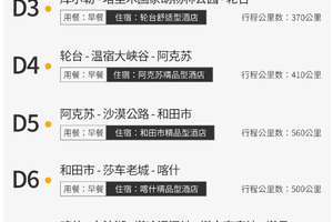 1、行程中的气温怎么样?备什么样的衣物比较好?带什么行李箱比较好? 因为是南疆行程,所以尽管是这个时间段,相对北疆的喀纳斯等地来说,我们这条线路是相对暖和的,但是,毕竟要到帕米尔高原,而且还有早晚温差大的问题。所以,建议还是要备有薄羽绒或是带有抓绒的冲锋衣这样的保暖衣物。夏装已经完全用不上了,春秋装和初冬装是这线的常备衣物。保暖衣服(如:冲锋衣、冲锋裤、抓绒衣、抓绒裤)保暖手套、运动鞋(或休闲鞋)、水壶、太阳镜、带沿的帽子、唇膏、防晒霜(SPF30++以上)、垃圾袋、常备药品、个人用品(如洗漱用品、换洗衣物、袜子等),这些都是必备的。行李箱还是建议带个拉杆箱和一个双肩小背包,所到之处基本我们大巴车都跟着,拉杆箱就放在车子的行李仓里,双肩包背着进景区玩比较方便,包里装些相机,水啊,零食啊,照相及臭美用的纱巾啊什么的比较方便。 2、行程中行程有难度吗?有海拔吗?高度怎么样? 南疆地域辽阔,行车时长,比较大的难度就是坐车时间比较长。基本没什么长时间的徒步,也没什么爬山,在塔河胡杨林,只要你喜欢,也可以走上好几个小时,所以有一双舒适的旅游鞋和一双拖鞋(玩沙漠的时候用得上)和一个好心情很重要。 从喀什到塔县这一天,我们就是要进到帕米尔高原了,路上经过并游玩的卡拉库里湖,海拨是3600米,塔什库尔干县城海拔是3100米。 3、行程中要办边防证吗? 要办边防证。到时领队会带大家统一办理。 4、行程中有自费的景点和购物吗? 南疆行程的景区里,基本没有自费项目,想有都比较难。我们的行程也没有购物项目,你若想购物只能自行安排时间了,好在我们在塔县和喀什的时间都比较充裕,他们的民族工艺品都是很有特色的,逛市场的时候,可以买上。当然,要记住,刀子类的东西是不可以带上飞机的,而且在目前的情况下,刀子类的东西都不可以快递出疆。 5、可以洗澡吗? 以防感冒引起高反,刚进入高海拔地方不建议洗澡。 6、请问一路上可以停车拍照吗? 可以,只要司机和领队确认是安全的地方,只要时间充足的时候风景好的地方,请大家有礼貌的叫师傅停车绝对没问题。但是因为漂亮的地方实在太多,所以一路上大家请和领队商量,听从领队安排。 7、关于时差? 新疆与内地有两小时时差,早晨一般09:30—10:00上班,下午15:30—19:30下班。许多游客会感到不习惯,因此,游客应做好适应时差的准备。 8、关于用餐? 全程不含正餐,新疆的口味普遍偏酸、辣、甜,多数菜肴中都有洋葱、辣椒和西红柿,用餐过程中中如有忌口或有特殊要求者,请提前告知陪同,拉条子(拉面)吃完可以免费添加拉面,但添菜需另付菜金;民族聚居区,宗教仪式较多,请游客不要有意驻足观看;牧民以粮食奶茶和肉食为主,忌食海鲜。主人献茶时,客人应欠身双手去接,接受礼品时必须身子稍屈双手接受。请勿对牧民的家畜和猎犬打骂,以免引起误解。 9、关于交通? (1)本活动线路路况复杂,虽然我们在出发前会对车辆进行相应检查,但是在旅途过程中车辆依旧可能会出现抛锚的情况。如果车辆出现抛锚,请队员们耐心等待,或者一起努力解决。我们会在最快时间内,尽力解决车辆问题,如果实在无法解决,我们将调用备用车辆来保证行程的正常进行。调换车辆期间,可能对行程景点参观有所影响,希望参团队员对此能够理解。因车辆抛锚属于临时突发的偶然现象,故不接受以此投诉,客人不得以此索取补偿金或要求退款,请知悉! (2)因不可抗力因素(如遇塌方、泥石流、雪崩、洪水等自然现象)或航空公司航班延误取消等原因造成的增加费用或无法按照正常行程游览,根据旅游相关规定,我公司将给与积极的协调配合不予承担相应赔偿责任,增加费用旅游者自理。