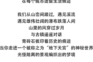 早餐后穿越喀斯特地貌的典型景观-九洞天,行走一段“黔桂古道”之后进入原始的洞穴里穿越,溶洞内钟乳石奇异,光影绰约;林深处植被繁茂,日光斑驳,鸟鸣悦耳。一路仿若与自然对话,尘世烦忧皆抛。 中午返回五里桥,大家自由到农家乐解决午餐,还有时间的话可到青龙潭瀑布游玩,随后下午乘车前往龙里县城入住酒店。 温馨提示: ① 今天的徒步路程约6公里,海拔爬升为300米,以喀斯特地形地貌和溶洞为主。 ② 今天可以不用准备路餐,徒步返回时在民宿/客栈周边的农家乐品质地道农家菜;在野外徒步活动中所产生的垃圾必须要自行带到可放置的垃圾站。