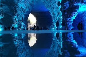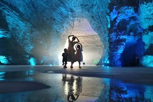 抬头仰望,钟乳石悬挂于穹顶之上,有的如巨柱擎天,有的似飞瀑直下,大自然的鬼斧神工令人震撼。