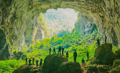 溶洞巨大空灵,巍峨雄奇,洞穿整座大山
