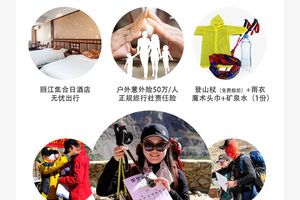 丽江住宿为赠送不用不退; 装备:登山杖1根(免费租借)、一次性雨衣1件、魔术头巾1条; |