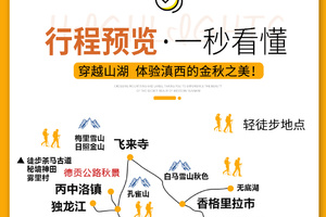 【航拍体验】每团人数达到11人或以上,则特别安排领队带无人机航拍 第1期10月18号大理集合-10月25丽江散(秋意初始) 第2期10月22号大理集合-10月29丽江散(秋意渐浓) 第3期10月25号大理集-11月1丽江散(秋意正浓) 第4期10月28号大理集-11月4丽江散(秋意正浓) 第5期11月1号大理集-11月8号丽江散(秋意正浓) 第6期11月5号大理-11月12丽江散(秋意正浓) 第7期11月8号大理-11月15丽江散(秋意正浓) 第8期11月12号大理-11月19丽江散(秋景甚浓) 成人3580元/人,儿童:2200元/人(小孩不占床位和门票),单房差900元 线路纯玩,不安排购物点 活动支持2~8人包团, 费用3580~5680元不等请咨询客服 |