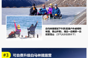 早8点酒店早餐后出发,乘车经措玉村(海拔4160m)1.5小时即可到达白玛林措(海拔4500m),背上今天的路餐和备用衣物,在领队的陪同下,开始我们的库拉岗日雪山徒步之旅。今天的徒步比较简单,沿着白马林措右侧一直前行到湖的尽头白马林寺,探访莲花生大师的修行地,眺望卡热疆雪山,之后原路返回。白马林措湖颜色因深浅不同与其周边的景色融汇后呈现出蓝、绿、白三种颜色 。据说信徒们可以从这湖底窥见自己的今生来世。天气好的情况下,我们将提供天幕帐篷、户外桌椅及茶具,可以坐在湖边一边喝茶一边欣赏雪山,傍晚返回措玉村或色乡入住。 |