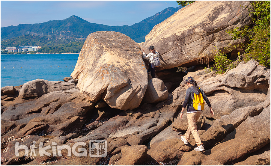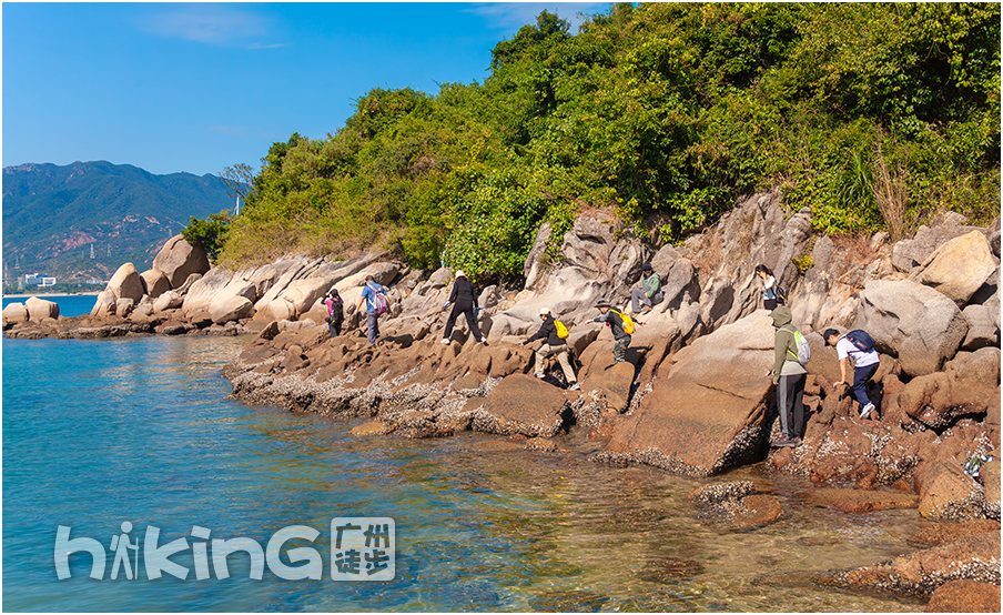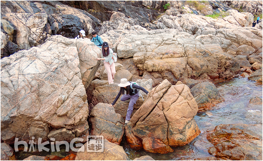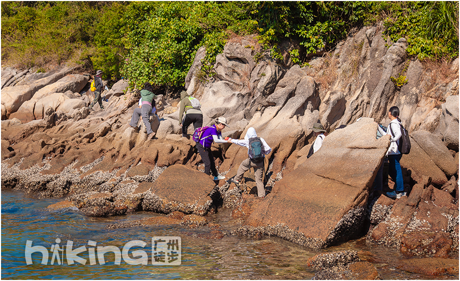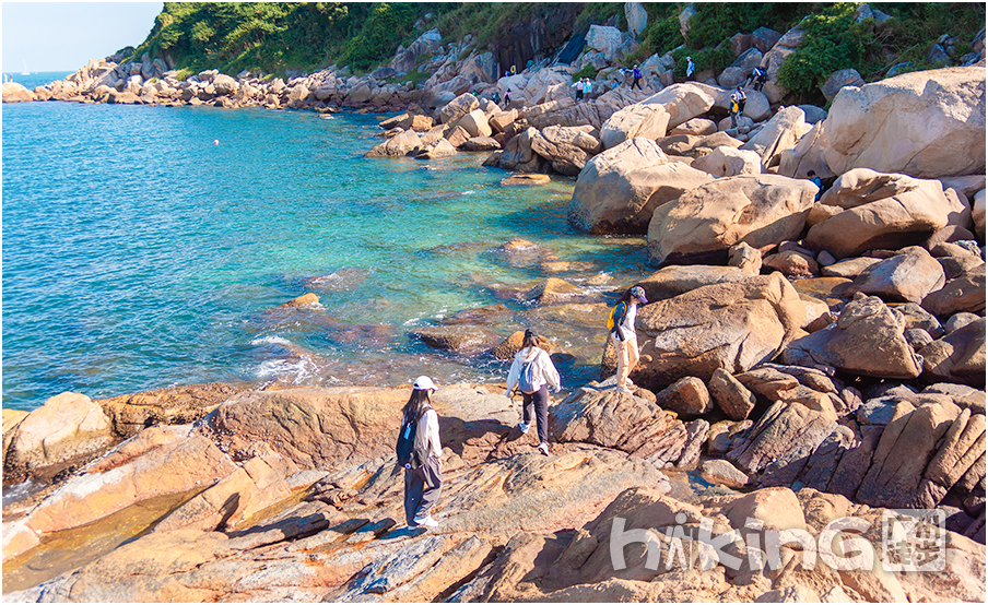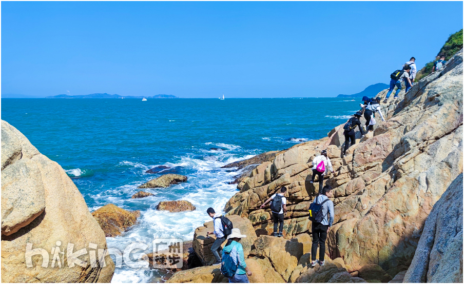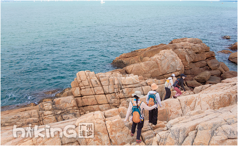 | 不断翻爬礁石,到达目的地,水清沙白的桔钓沙湾,拍完大合照后,自由活动1小时 | |||